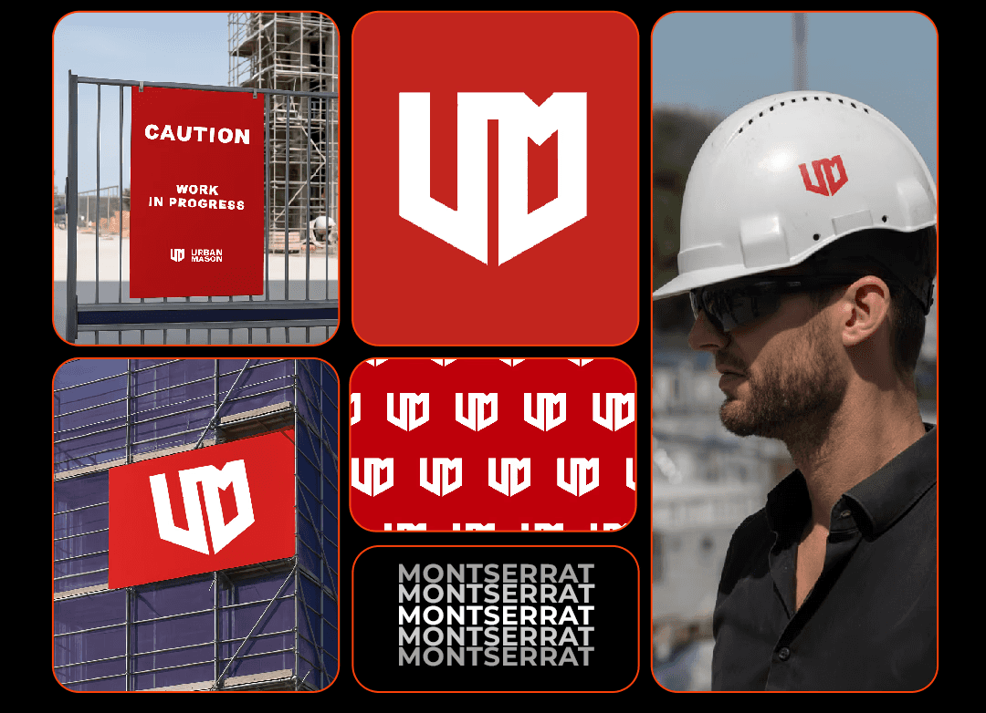 Across signage, safety gear, and construction sites, the visual language ensures consistency, recognition, and a sense of professionalism that reflects Urban Mason’s commitment to building excellence.